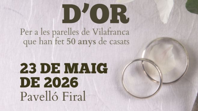 L’Ajuntament de Vilafranca del Penedès organitza un any més l’acte institucional dedicat a les Noces d’Or, una cerimònia que ret homenatge a totes aquelles parelles residents al municipi que han assolit els cinquanta anys de matrimoni o convivència. Aquesta celebració tindrà lloc el dissabte 23 de maig de 2026, al Pavelló Firal, i forma part de la programació oficial prevista dins la Setmana de la Gent Gran.