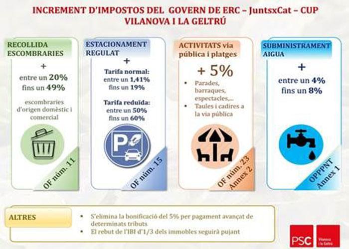 L’increment de la taxa d’escombraries, que fa un any es va retirar per la pressió de l’oposició a on estava inclosa la CUP, i avui és una proposta que es presenta pel govern com un “ajust”, quan en realitat van argumentar que busquen una major recaptació fins al punt d’assolir una taxa que pagui el 100% d’un servei absolutament desfasat, i per tant, ja avisen que apujaran el rebut els propers anys. Sorprèn que la mateixa CUP al 2018 qualifiqués la mateixa proposta d’increment “d’injusta” i avui siguin qui la proposin, una mostra més de la seva deriva incoherent. També cal recordar que l’actual alcaldessa es felicitava d’aturar, quan es proposa increments d’un màxim del 5%, tot explicant que viure a Vilanova no era fàcil. Doncs bé, gràcies a la proposta que fa Olga Arnau, l’any 2020 serà un any dur fiscalment a Vilanova i la Geltrú per a moltes famílies i activitats econòmiques.
