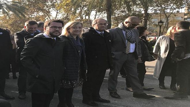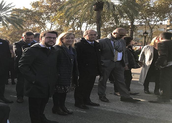Pocs minuts abans de dos quarts de nou del matí, l'alcaldessa de Vilanova i la Geltrú i el conseller accedien a l'escala del Tribunal provinents del passeig Lluís Companys, acompanyats pel president Torra i altres membres del govern de la Generalitat.