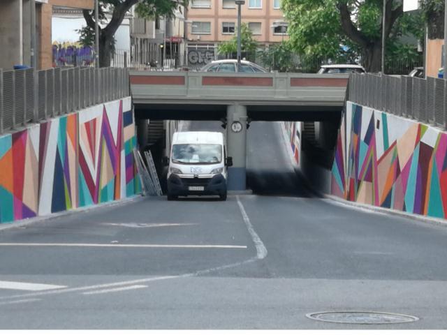 Les obres, fruit de la col·laboració entre les regidories de Projectes i Obres i Joventut,  han permès coordinar unes actuacions que ha realitzat RENFE i  actuar sobre unes patologies que es van detectar sota el pont de RENFE, a l'hora que  i s' ha efectuat la neteja de paraments, un nou arrebossat amb morter, pintar homogèniament les parets i posteriorment plasmar en els murs  la proposta artística del col·lectiu Organització Zero.
