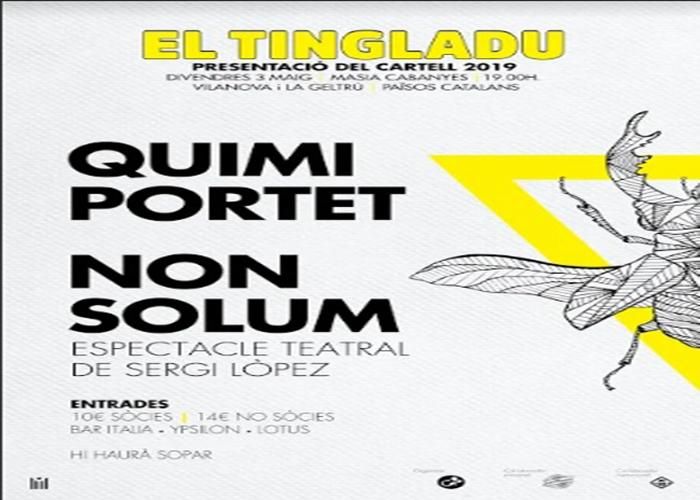 Per altra banda, la festa de presentació d’El Tingladu 2019 serà una oportunitat única de tornar a veure el monòleg ‘Non solum’, interpretat per Sergi López i que des de que es va estrenar el 2005 ha estat aplaudit unànimement per crítica i públic. En aquesta comèdia existèncial, Sergi López interpreta un homes sol que es multiplica i es fa una pregunta clau: què està passant aquí?