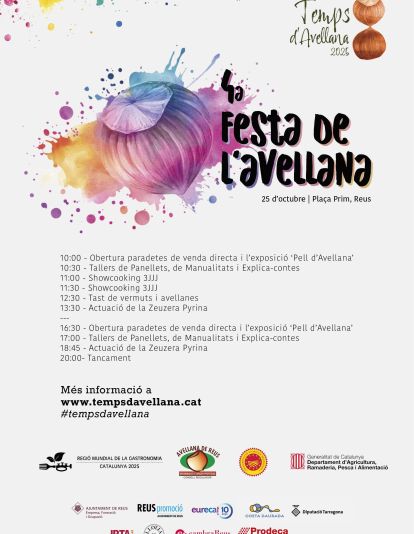 Al migdia, la DOP Avellana de Reus farà diverses activitats familiars a la mateixa plaça, com degustacions, showcookings i tallers de panellets, a més de propostes lúdiques com pinta cares i explica-contes. Aquestes activitats permetran als assistents conèixer millor el fruit típic de la zona de manera entretinguda i didàctica.