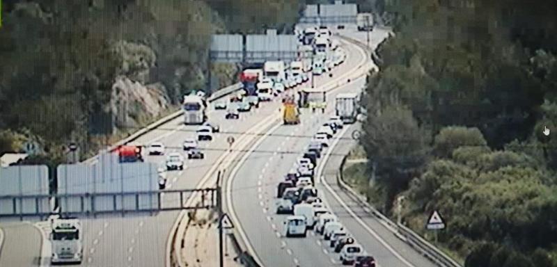 A l'AP-7 ara hi ha un carril obert a Tarragona en sentit nord i un tallat en sentit sud per un accident d'un camió que ha bolcat en sentit Girona. Aquest dissabte a les 11.35 hores després que un camió hagi bolcat. L’accident s’ha produït pels voltants de les 08.00 hores al quilòmetre 246 de l’AP-7, a la zona del Pont del Diable, i el vehicle de gran tonatge ha quedat totalment travessat a la via, afectant també dos carrils en sentit sud.