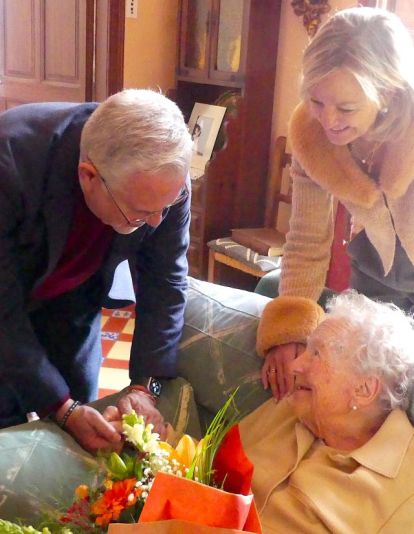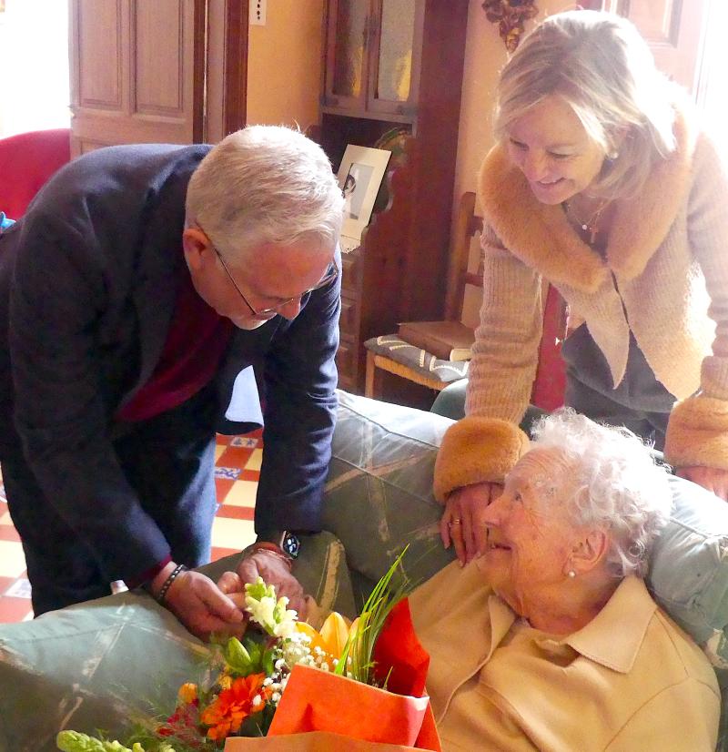En un càlid i emotiu acte d’homenatge, l’alcalde Pere Granados li ha lliurat un ram de flors i una placa, que ha rebut amb molta emoció, en companyia de dos dels seus fills, i de les regidores de Benestar Social i Relacions Ciutadanes, Cristina Berrio i Julia Gómez. També li ha fet entrega d’una ampolla d’oli de les oliveres centenàries de Salou, un regal que li ha fet especial il·lusió.