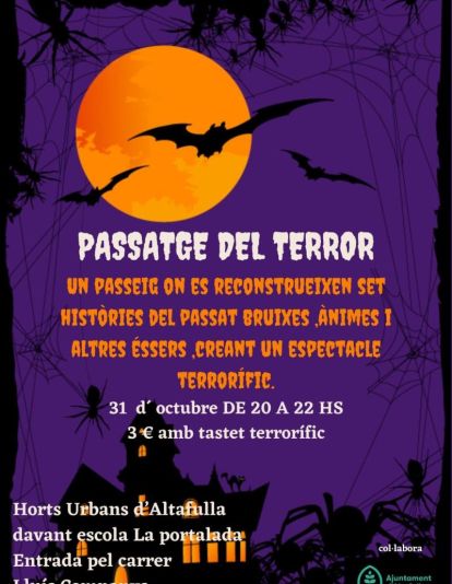 Altafulla crearà un passatge del terror per aquest 31 d'octubre. Aquest tindrà un horari de 20 a 22 hores als Horts Urbans del poble, davant de l'escola La Portalada. S'entra pel carrer Lluís Companys.