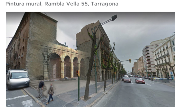 En el mural de la Rambla Vella s’hi representaran un total de 7 arcs de la façana del monument, partint d'un esquema lineal cap a una imatge fotogràfica. Es a dir, el primer dels arcs és representat com un dibuix a escala real (1:1) per anar fent aparèixer la pintura, conformant-se així a la paret principal (paral·lela a rambla vella) per després tornar a desaparèixer com a dibuix de línia (mur a 90º de la rambla). La recreació s’ha fet partint de les dades arqueològiques conegudes.