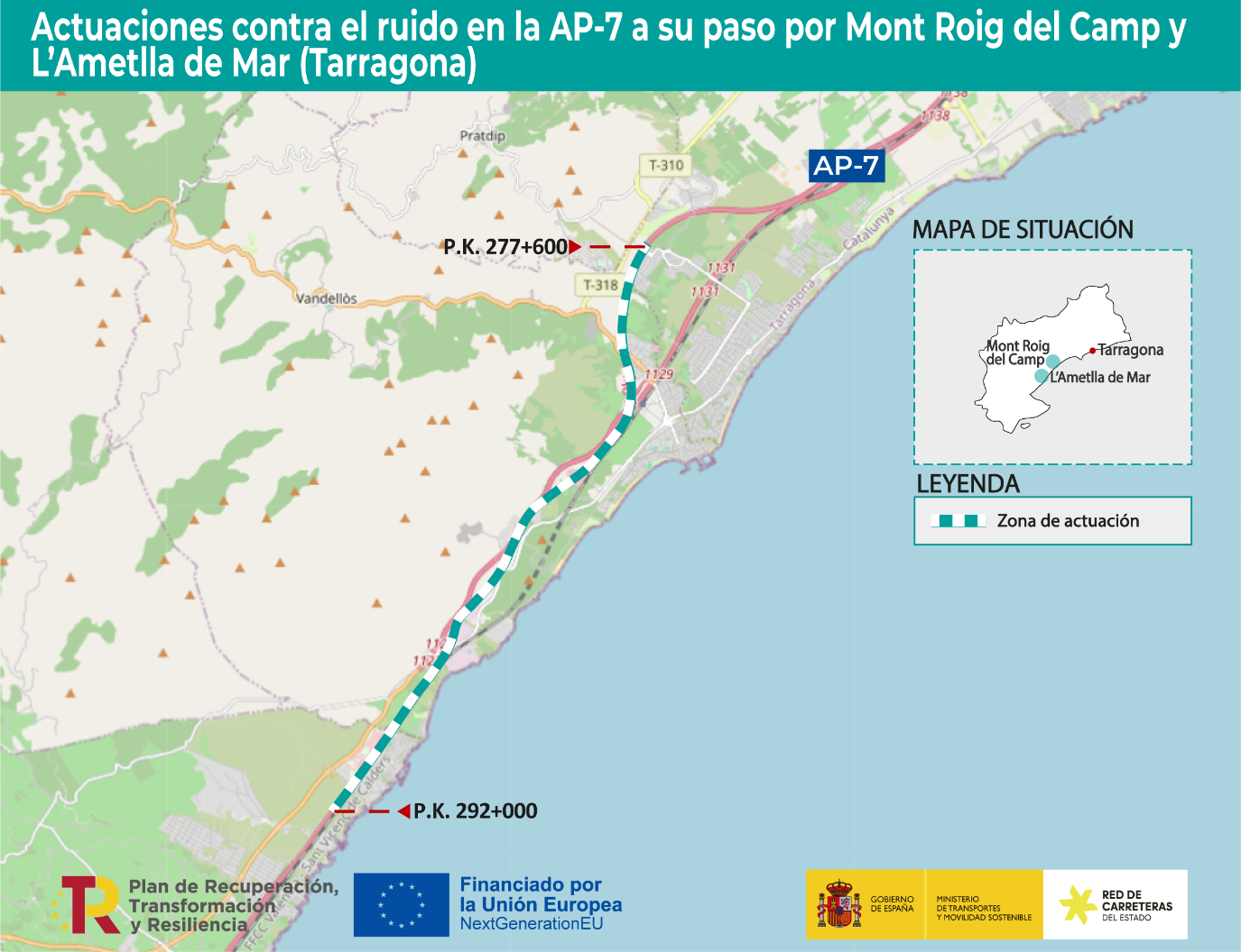 Concretament, al llarg de 3,2 km de l'autopista, en dos trams ubicats entre els km 277,6 i 292. S'instal·laran pantalles acústiques al marge esquerre de l'autopista, els treballs dels quals compten amb un pressupost d'obra estimat de 10,2 milions d'euros (IVA inclòs).