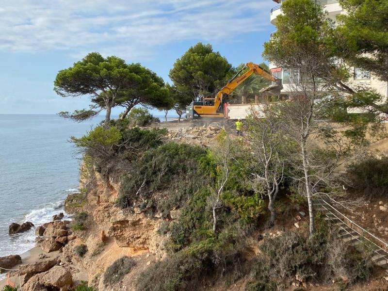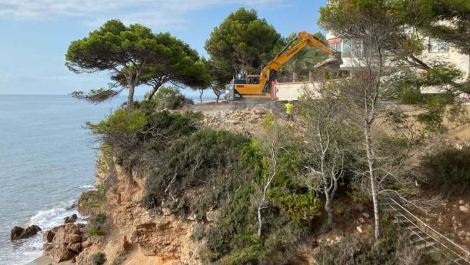 Aquest dimecres han començat les demolicions del ferm del Passeig de les Cales de Miami Platja, després d’alguns dies de treballs previs de preparació. Les obres s’han iniciat entre els números 149 i 111 del passeig Mediterrani, tallant l’accés al passeig de les cales en aquesta zona. Per aquest motiu també, des d’avui s’han tallat els accessos a la cala dels Àngels, cala del Pescador, cala Bot, cala Califòrnia i Cala Santa Fe. A partir d’ara només tindran accés als aparcaments les persones residents d’aquests edificis.
