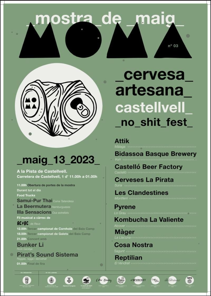 Tot està a punt per gaudir de la 3a Mostra de Maig de Cervesa Artesana (MOMA), que se celebrarà el pròxim dissabte 13 de maig a Castellvell del Camp, organitzada per l'Associació de Cervesers del Baix Camp (AC/BC), amb la col·laboració de l'Ajuntament de Castellvell del Camp. Aquesta tercera edició de la mostra, que tindrà lloc a la Pista de Castellvell de les 11 del matí a la 1 de la matinada, presenta 10 elaboradors i hi haurà representades una cinquantena de referències de cerveses.