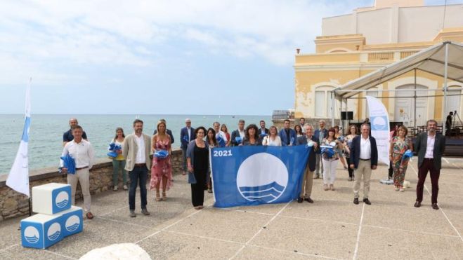 L’alcaldessa de Cambrils, Camí Mendoza, i el regidor de Medi Ambient, Lluís Abella, han recollit avui les quatre Banderes Blaves que onejaran aquest estiu a les platges del municipi. L’acte de lliurament de les Banderes Blaves a les platges catalanes s’ha dut a terme aquest matí a Sitges i ha estat presidit per la consellera d’Acció Climàtica, Alimentació i Agenda Rural, Teresa Jordà.