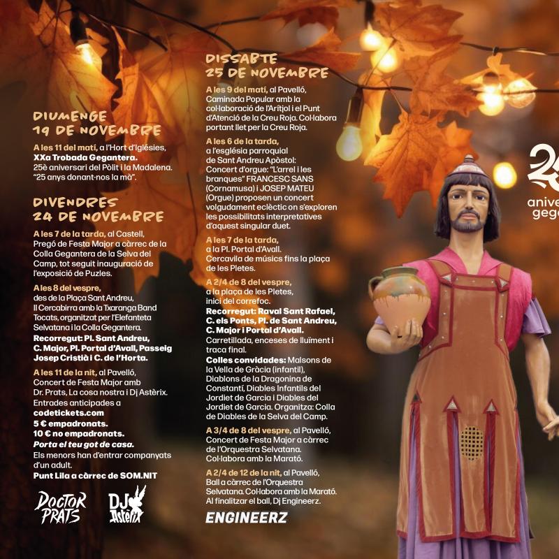 Aquest any s'ha volgut fer un homenatge als gegants que celebren el seu 25è aniversari. Per escalfar motors el pròxim diumenge 19 de novembre es farà una trobada gegantera a l'Hort d'Iglésies.