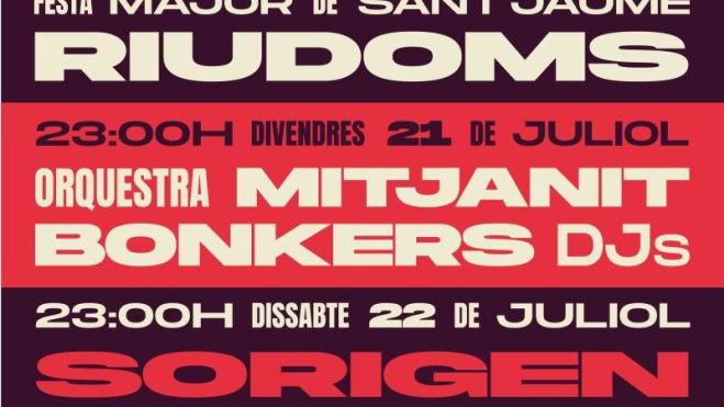- Divendres 21 de juliol: Orquestra Mitjanit i Dj's Bonkers.