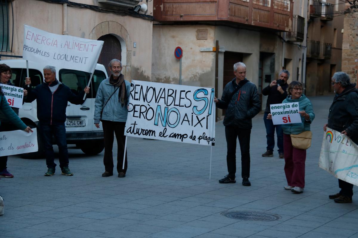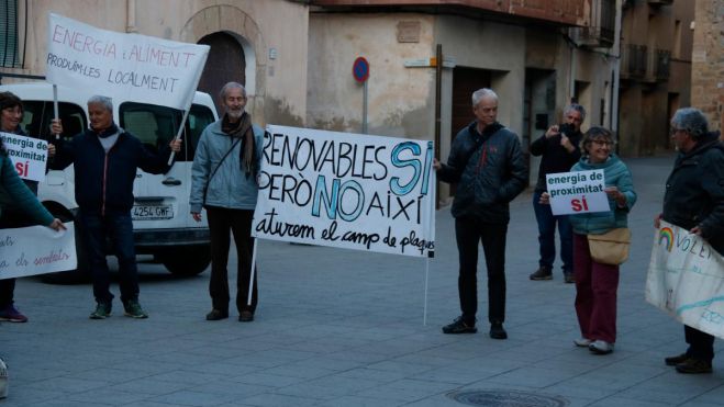 Una cinquantena de veïns s'han concentrat davant l'Ajuntament de l'Aleixar (Baix Camp) per protestar contra la instal·lació d'una planta solar fotovoltaica de 4.064 panells dins el terme municipal.