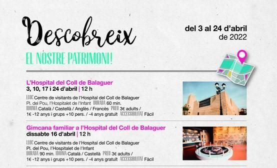 En les visites guiades a l’Hospital del Coll de Balaguer per al públic general, programades per als dies 3, 10, 17 i 24 d’abril, a les 12 h, s’hi mostrarà el centre de visitants, situat dins dels murs de l’antic hospital fortalesa, fundat per l’infant Pere d’Aragó l’any 1344 per defensar, assegurar i poblar el territori i el pas pel Coll. En aquest espai museogràfic s’hi expliquen les característiques i la història d’aquest conjunt monumental, origen del poble de l’Hospitalet de l’Infant, que està declarat Bé Cultural d’Interès Nacional (BCIN).