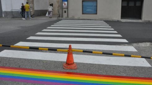 Torredembarra pinta un tram d’un pas de vianants amb els colors la bandera LGBTI