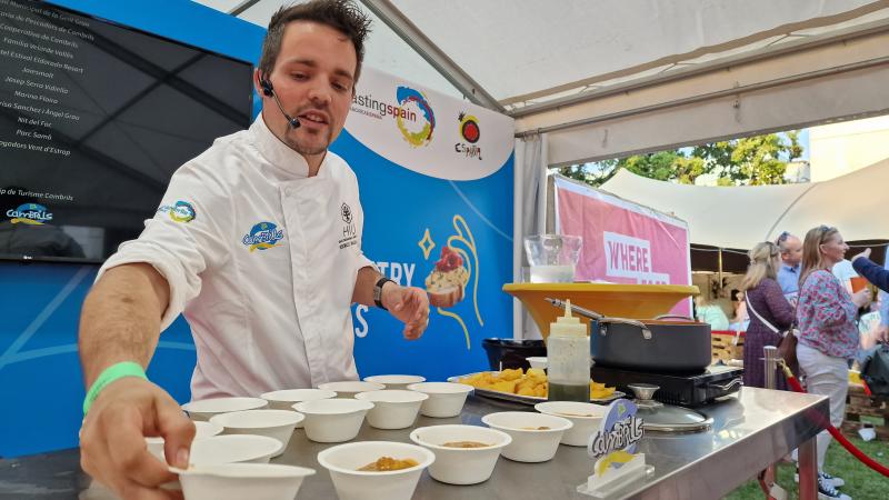 En aquesta acció, el xef Sergi Palacín va oferir showcookings de dues receptes icòniques del seu restaurant: “d’Allipebre mariner de Moll de roca de Cambrils “ i “Llobarro amb la seva emulsió i els seus ous curats”. A més, el primer dia, quan Cambrils va ser la destinació protagonista, el cuiner cambrilenc també es va fer càrrec de l’elaboració del Plat d’Autor al Restaurant que Saborea Espanya tenia dins de l’estand.