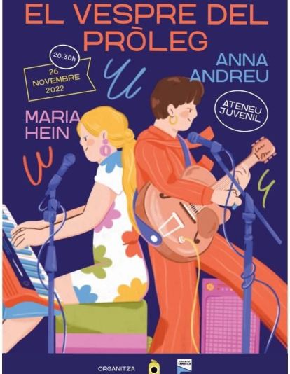 Les cantautores Maria Hein i Anna Andreu actuaran al Vespre del Pròleg de Cambrils el pròxim 26 de novembre a partir de les 20:30 hores a la sala de concerts de l’Ateneu Juvenil. Les entrades es poden comprar de forma anticipada a través del web https://entradium.com a 5€, a través d’entradium.com, i a 8€ el mateix dia.