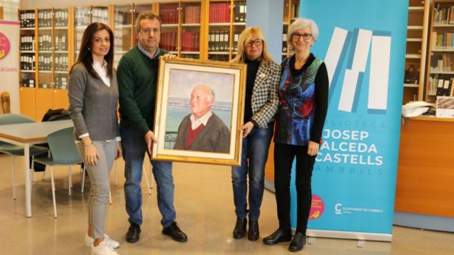 La Biblioteca Josep Salceda i Castells va rebre ahir la donació d’un retrat del periodista i historiador local que dona nom a l’equipament municipal. El lliurament va comptar amb la presència de la regidora de Cultura, Cinta Ballesté; la directora de la biblioteca, Rosa M. Fusté; el director de Revista Cambrils, Lluís Rovira, i la bibliotecària Eva Ferré.