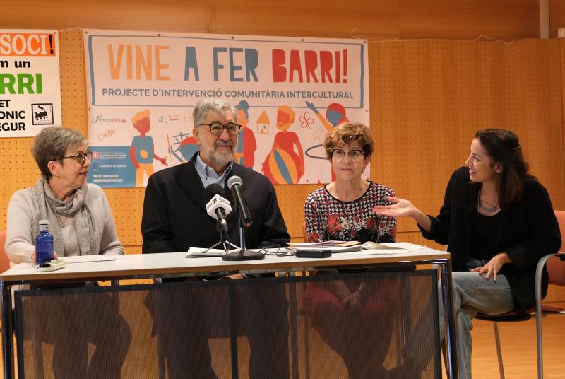 El regidor del barri, Josep Maria Vallès; la presidenta de l’associació veïnal, Maria Rosa Colom; la tècnica del PICI, Alba Quinto, i la representant del grup motor, Nuri Nolla, han presentat avui la iniciativa, sorgida arran del projecte d’intervenció que es realitza en aquest barri des del 2018.