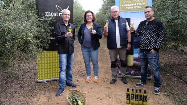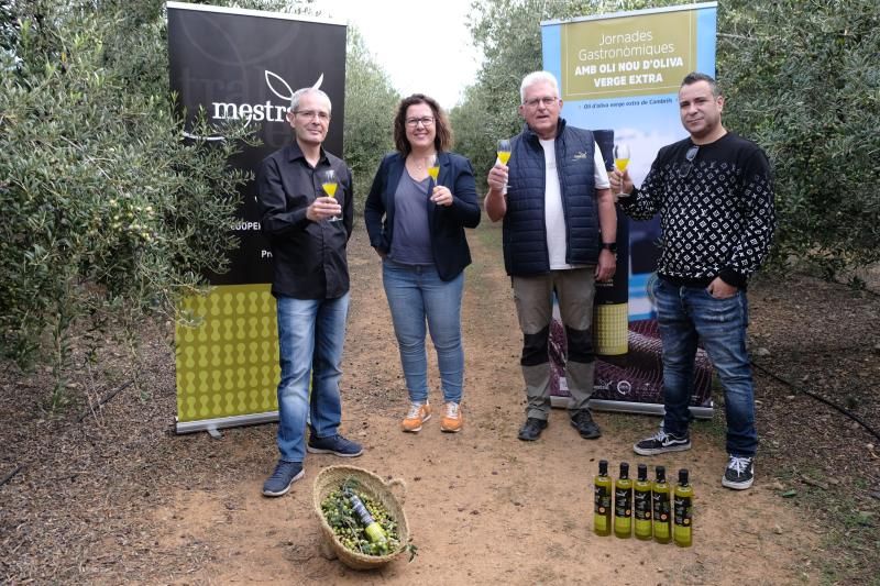 La roda de premsa de presentació de les jornades, que s’ha portat a terme en un camp d’oliveres de la cooperativa, ha acabat amb la degustació d’un còctel amb oli nou creat per Carla Moreno, alumna de l’Escola d’Hoteleria. La jove ha preparat l’innovador combinat en directe, amb l’ajuda de dues companyes, Gabriela Soriano i María José Carrillo, i ha aconseguit sorprendre gratament les persones assistents amb la seva proposta.