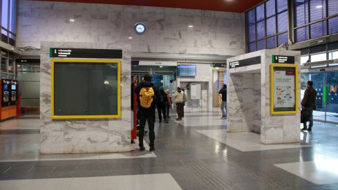 Les pantalles electròniques anuncien una progressiva recuperació del servei regional R-15 amb propera sortida prevista a les 12.36 h. Al migdia, tant al vestíbul com a les andanes mostraven baixa afluència de passatgers.