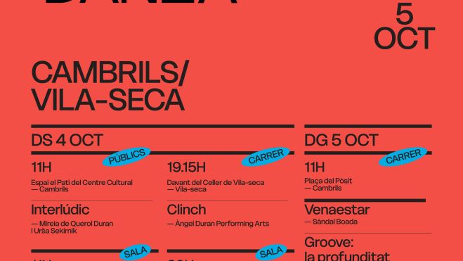 Els municipis de Cambrils i Vila-seca seran escenari, el cap de setmana del 4 i 5 d’octubre, del Circuit Tardor en Dansa, un projecte que té com a objectiu dinamitzar el sector de la dansa, impulsar la distribució territorial i reactivar el mercat intern.