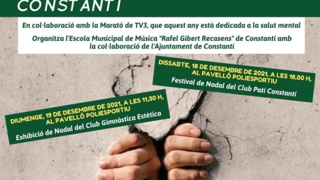 Dintre d’aquesta Marató Musical també s’inclouran el Festival de Nadal organitzat pel Club Patí Constantí el dissabte 18 de desembre a les 18 hores, i l’Exhibició de Nadal del Club Gimnàstica Estètica i Rítmica, el mateix diumenge 19 de desembre a les 11.30 hores.