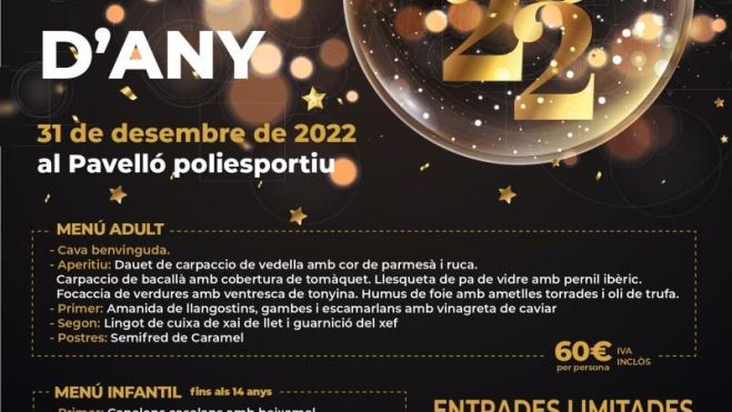 El preu de les entrades per al Sopar és de 60 euros per als Adults i 30 euros el Menú Infantil. Per aquelles persones que vagin directament al Ball, el preu és de 5 euros. En el cas de les entrades per al Ball es podran comprar la mateixa nit de Cap d'Any al Pavelló Poliesportiu.
