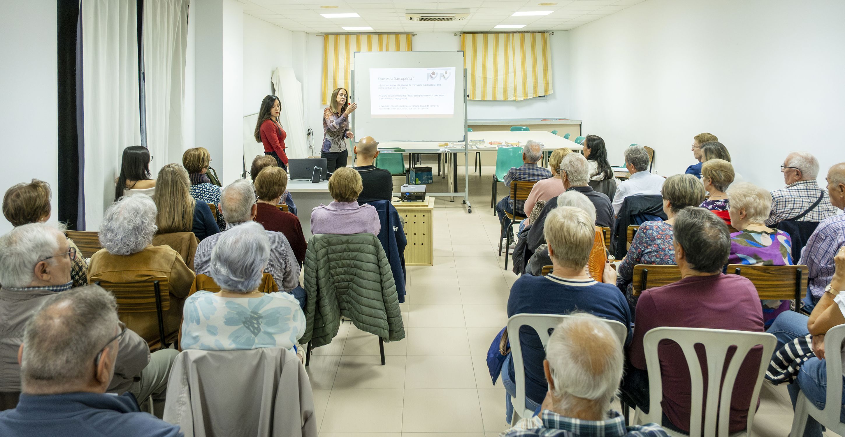 El cicle va començar dimecres 5 de novembre amb la conferència “Prevenció de la sarcopènia amb fisioteràpia i nutrició”, a càrrec de Montse Aleu i Stephanie Chávez, de la clínica FISIONATUR.