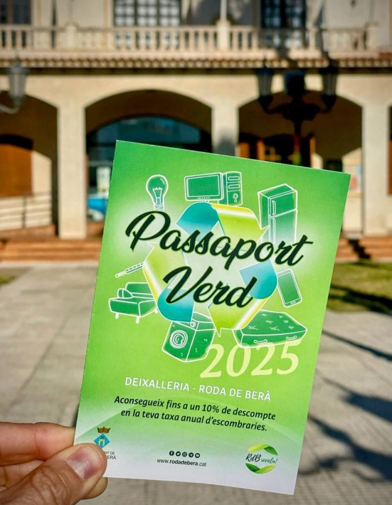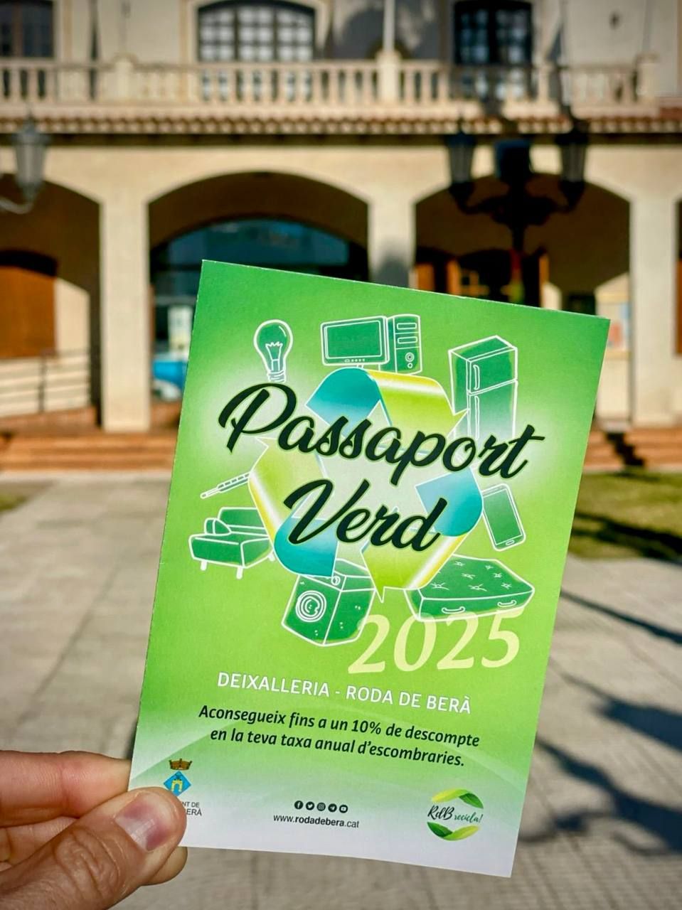 Les famílies més compromeses amb el medi ambient són premiades des de fa cinc anys a Roda de Berà amb una reducció, entre un 5 i un 10%, en el seu rebut anual de la recollida d’escombraries. Això és possible gràcies al Passaport Verd, una iniciativa municipal a través de la qual les famílies rodenques poden aconseguir una reducció de la taxa de la recollida d’escombraries gràcies a les seves visites a la Deixalleria.