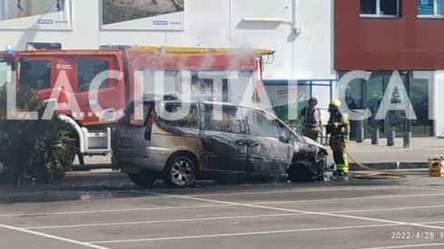 Els Bombers han acudit ràpidament al pàrquing del Decathlon per apagar el foc que ha deixat el cotxe completament inutilitzat. Es desconeixen encara les causes del foc.