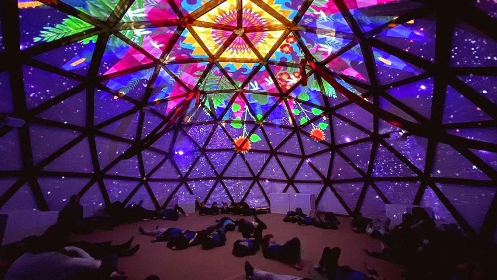 Aquesta espectacular posada en escena aposta per al desenvolupament de la consciència ecosocial. L’interior de la cúpula geodèsica, construïda per un equip d’arquitectes experts en bioconstrucció, està equipada amb la més nova tecnologia de projecció fulldome360 que permet projectar imatges sobre la superfície d’una mitja esfera embolcallant les persones amb impressionants paisatges i efectes visuals que es troben a l’interior de la cúpula geodèsica.