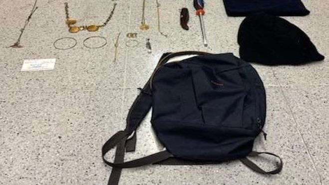 Durant l’escorcoll, la patrulla també va localitzar a la teulada d’una pèrgola la motxilla i diverses peces de roba que el lladre havia deixat caure. La motxilla contenia eines, un tornavís, una navalla i les joies sostretes, que van ser retornades a la seva propietària.