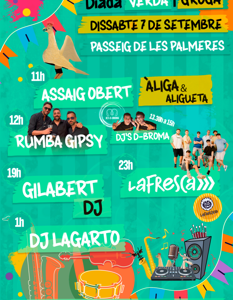 - 23 h, pg. de les Palmeres. La revetlla. Per acabar aquest dissabte tan festiu, el Ball de Diables us proposa una doble tanda musical. El grup LaFresca versionarà els clàssics de revetlla més ballables. I finalment, el discjòquei Lizard Dj, més conegut pels de casa com Dj Lagarto, posarà punt final a aquesta diada festiva.
