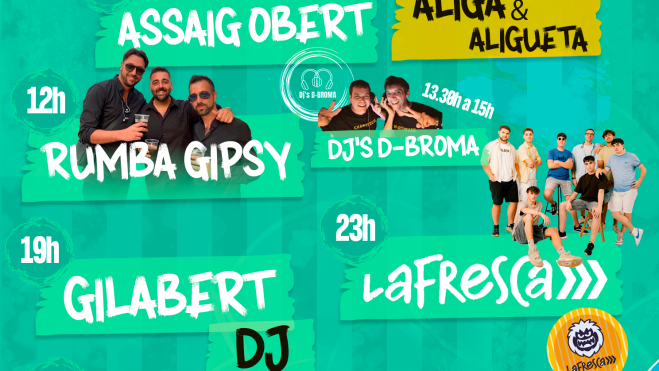 A continuació, i seguint l'esquema de l'any passat, la rumba serà la protagonista del vermut de la mà del grup Rumba Gipsy. Després del merescut descans per dinar, la festa es reprendrà a la tarda amb música indie punxada pel discjòquei Jordi Gilabert, fins al punt de la posta de sol. Finalment, la jornada festiva finalitzarà amb música de revetlla, aquella que ens transporta a les millors nits de festa major amb el grup de versions LaFresca que ens farà ballar fins ben entrada la matinada. Els discjòqueis D-Broma i Lizard DJ complementen l'oferta musical.
