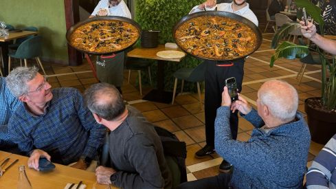 L’arribada de les paelles a taula, com no podia ser de cap altra manera, ha estat rebuda amb entusiasme i tota mena d’elogis, que s’han amplificat en tastar-la. Vet aquí la clau per a la perfecta cohesió: bon ambient esportiu i bona taula.