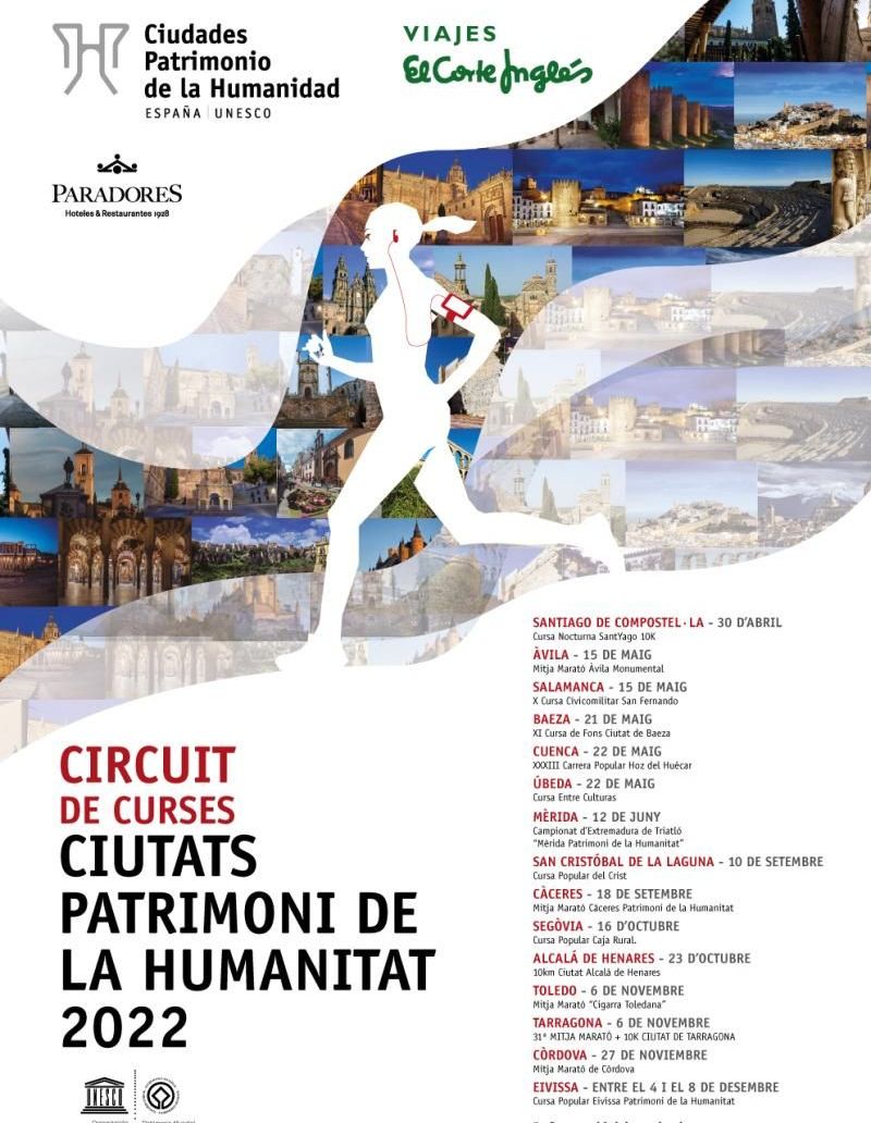 El Grup de Ciutats Patrimoni de la Humanitat d’Espanya (GCPHE) ha anunciat aquesta setmana que per al 2022 es recupera el Circuit de Curses de les Ciutats Patrimoni de la Humanitat i n’ha avançat el calendari. Les proves tindran lloc de l’abril al desembre a les quinze ciutats que integren el GCPHE, entre elles Tarragona.