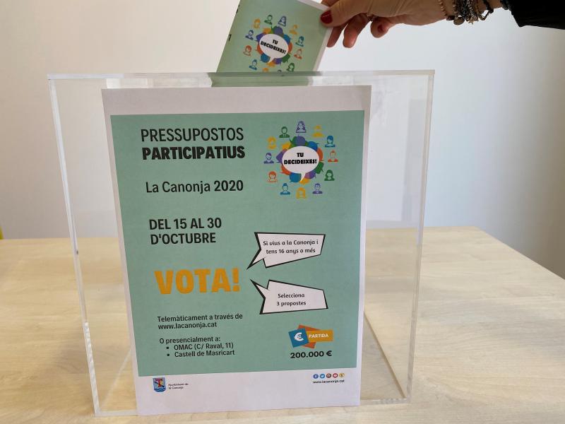 La votació es podrà fer efectiva telemàticament a través de la pàgina web https://participacio.lacanonja.cat/ mitjançant un procés de registre. I també es podrà votar presencialment, presentant el DNI, a les oficines de l'Ajuntament i al Castell de Masricart.
