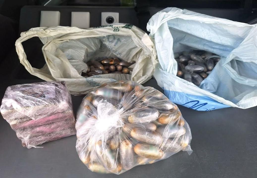 Un cop identificats, els dos ocupants van manifestar que havien sortit d’Alacant amb destinació a l’aeroport de Barcelona - El Prat. En l’escorcoll del vehicle, els agents van localitzar a l’interior d’una maleta quatre peces rectangulars i 166 cilindres d’haixix. Aquest tipus d’embalums són similars als que s’intervenen habitualment en controls de passatgers, ja que solen ser ingerits per transportar la droga dins l’organisme.