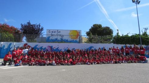 L’alumnat de l’escola Les Eres de Creixell i els seus mestres han volgut fer visible l’escola amb el mural gegant que han pintat amb l’il·lustrador Miki Pérez.