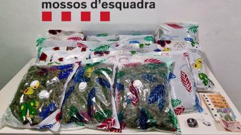 Durant l’escorcoll de l’habitació, els agents van localitzar una altra bossa de marihuana, sumant un total de catorze paquets amb un pes global de gairebé 14,5 quilos. Davant d’aquests fets, l’home va ser detingut cap a les 00.20 hores com a presumpte autor d’un delicte de tràfic de drogues.