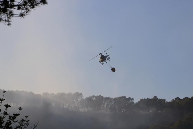 Les flames han avançat empeses pel vent de mestral amb ràfegues de 40 km/h i la gran quantitat de combustible vegetal a causa de la sequera. A les 5 de la tarda el foc ha baixat la intensitat.