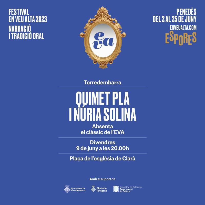 Torredembarra, a través de la Regidoria de Cultura, s’ha tornat a sumar enguany al programa del Festival EVA, En Veu Alta. Narració i Tradició Oral al Penedès i al Priorat i serà l’escenari el proper 9 de juny de l’espectacle «Absenta», amb Quimet Pla i Núria Solina, tot un clàssic. L’actuació tindrà lloc a les 20 h, a la plaça de l’Església de Clarà, i és gratuïta.