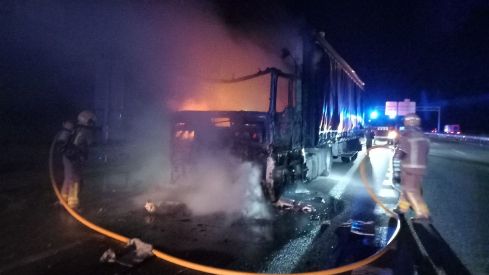 Segons les primeres informacions, les flames han afectat únicament la part davantera del vehicle. La càrrega de l'interior de la caixa del camió no ha resultat danyada i el foc tampoc s'ha estès a massa forestal propera. Cap persona ha resultat ferida.