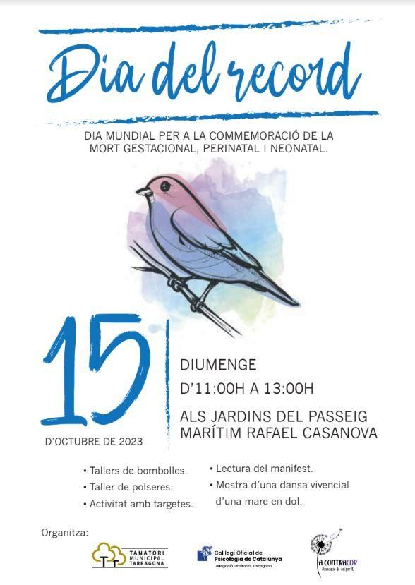L’Empresa Mixta de Serveis Fúnebres Municipals de Tarragona (EMSERFUMT) i l’Ajuntament de Tarragona organitzen, juntament amb el Col·legi de Psicologia de Catalunya i l’associació Contracor, una jornada per donar visibilitat al Dol Gestacional, Perinatal i Neonatal amb motiu de la celebració, aquest diumenge 15 d’octubre, del Dia Mundial de la Conscienciació del Dol per aquesta pèrdua. L’acte se celebrarà als Jardins del Passeig Marítim Rafael Casanova (davant del Fortí de la Reina).