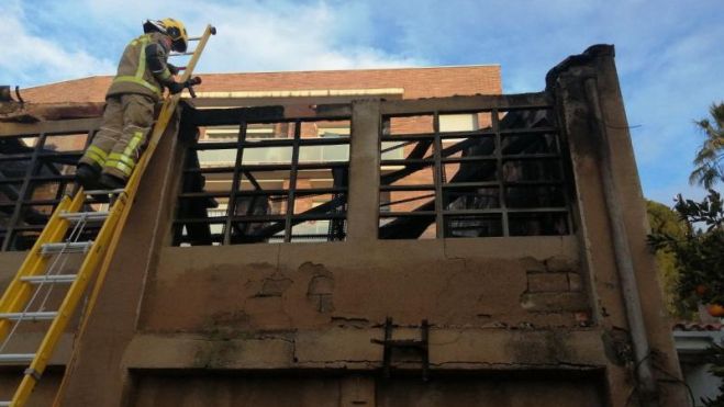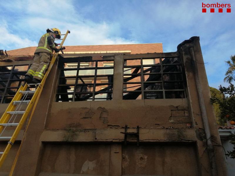 Es tractaria d'un incendi que s'ha produït en una nau de planta baixa i un altell, el sostre de la qual s'ha col·lapsat.