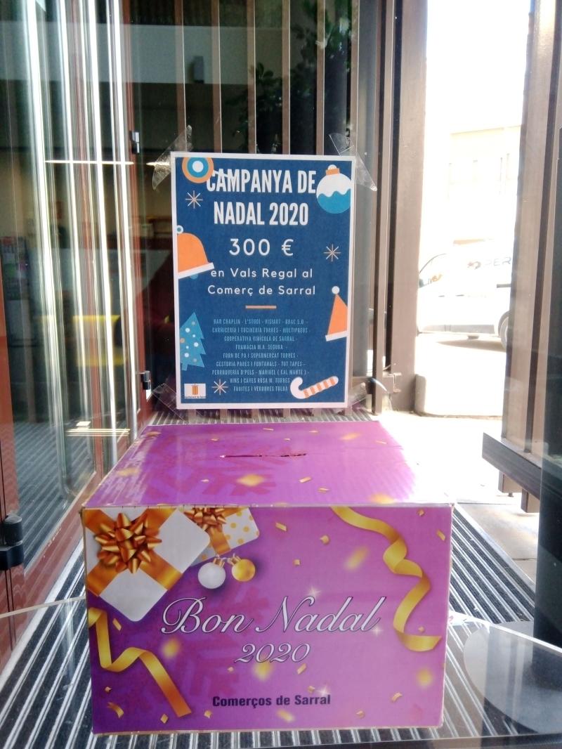 El regidor de Comerç, Eduard Saltó, explica: «L’objectiu és incentivar el comerç local, que a més enguany està tocat per la pandèmia. Aquestes festes seran diferents, però el comerç aporta vida als nostres pobles i Sarral no n’és una excepció, així que la campanya pretén esperonar la compra de proximitat». I hi afegeix: «Ens agradaria que, l’any vinent, sorgís una associació de comerciants per poder demanar ajuts a altres administracions i poder fer així d’altres accions de suport al comerç sarralenc».