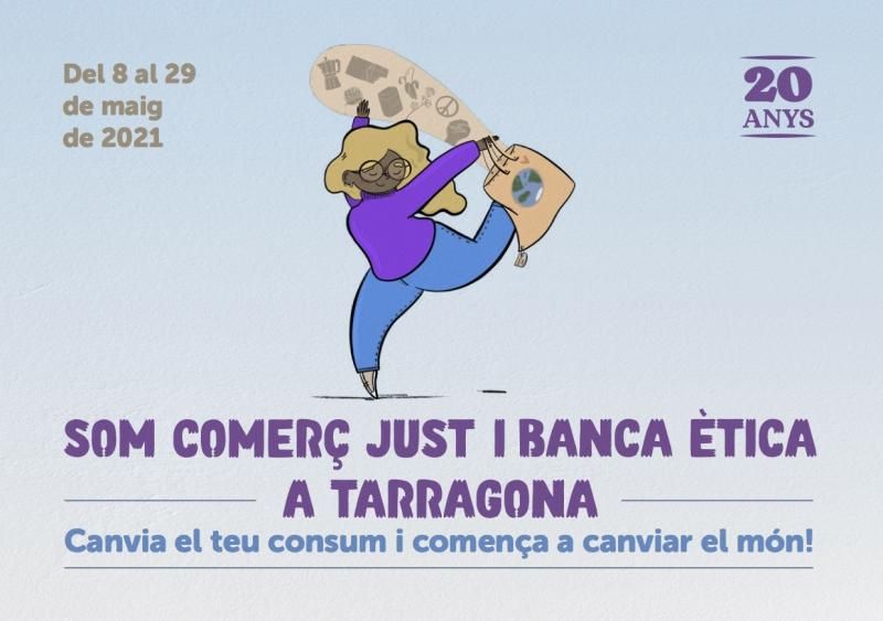 Aquest dissabte 29 de maig a la Plaça Corsini tindrà lloc la celebració del 20è aniversari de la Festa del Comerç Just i la Banca Ètica a la ciutat de Tarragona amb el lema “Canvia el teu consum i comença a canviar el món”.
