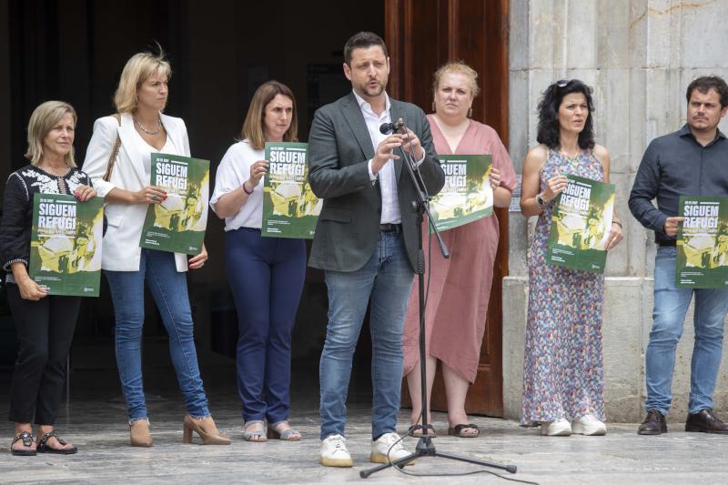 La porta principal del Palau Municipal ha acollit aquest dimarts la lectura del manifest amb motiu del Dia Mundial de les Persones Refugiades. L'acte ha estat presidit per l'alcalde de Tarragona, Rubén Viñuales i la lectura del manifest ha anat a càrrec de la consellera de Cooperació, Cecilia Mangini, entre altres consellers i conselleres municipals.