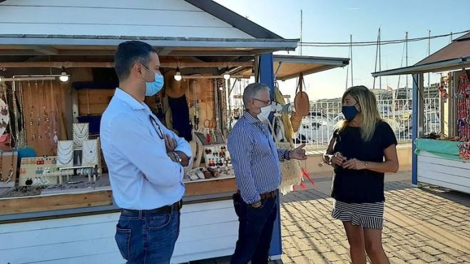 L’alcalde de Salou, Pere Granados, acompanyat del regidor de Dinamització Econòmica, Hèctor Maiquez, va visitar ahir dilluns, al vespre, el mercat d’artesania situat a l’Espigó del Moll.
